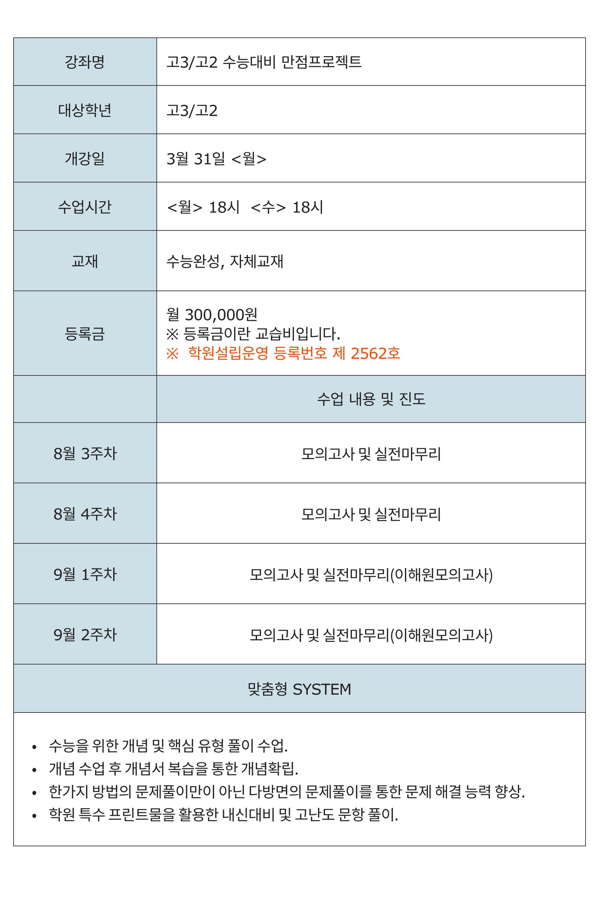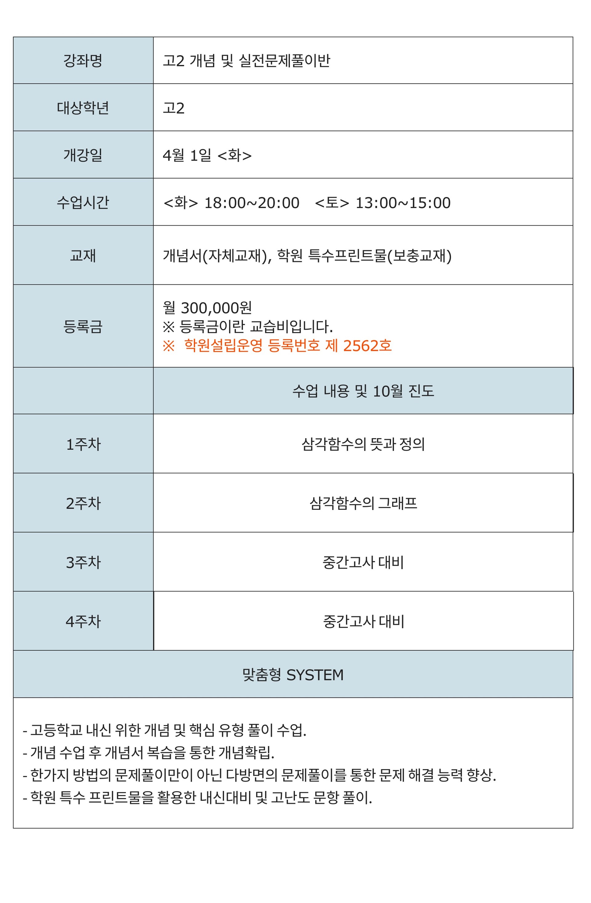고등부 단과반부족한 과목에 대해선택적으로 집중 수업 | ![]() |