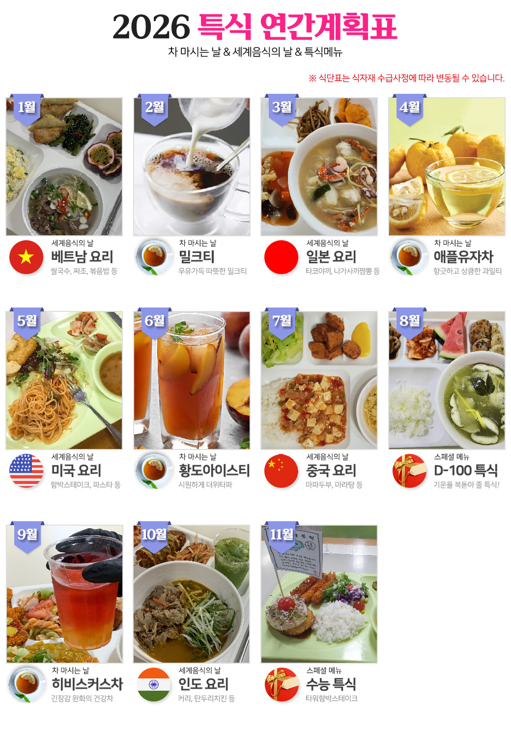 ※ 상기 메뉴는 물품 사정 및 기타 사항에 따라 변경될 수도 있습니다.