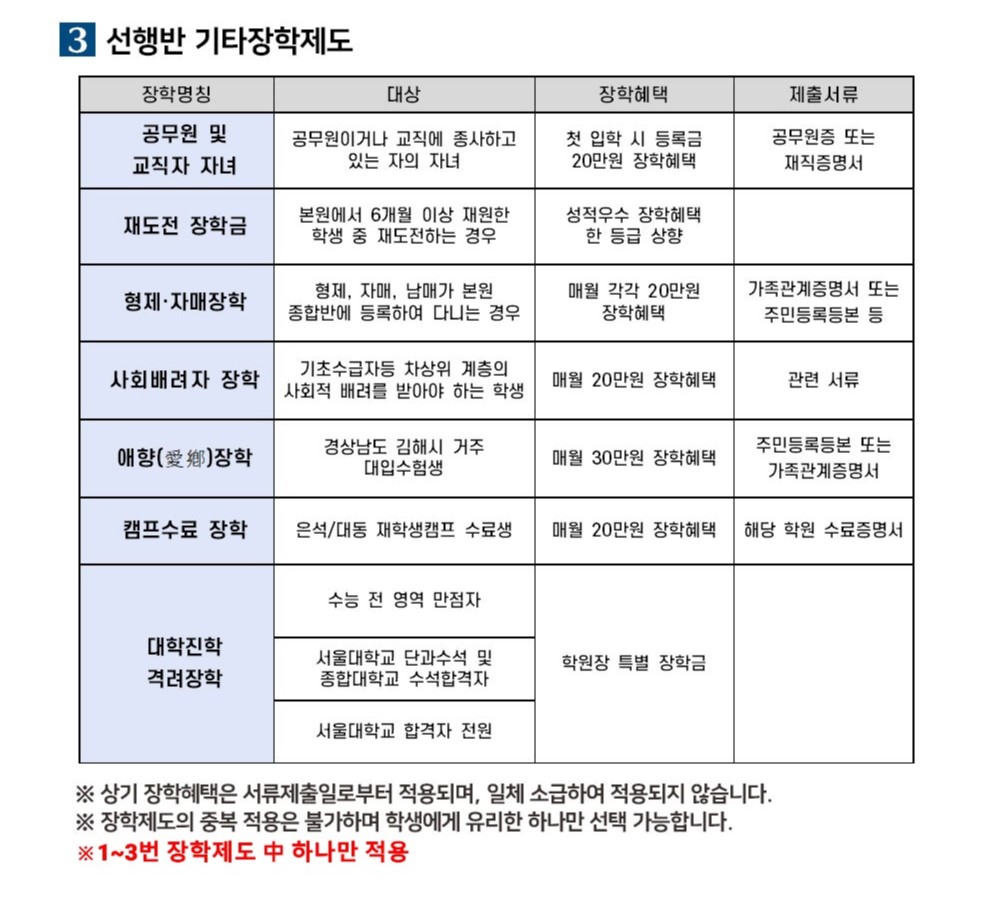 대입기숙반 - Pre선행반