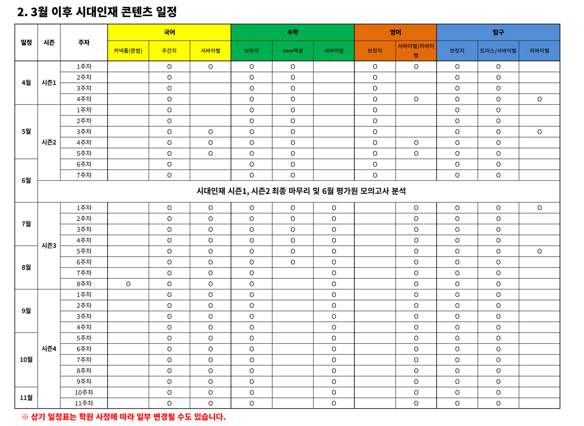 대입기숙반 - 대입선행반